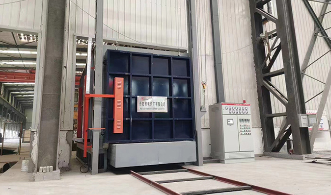 電爐內(nèi)和爐外軌道出廠時已與臺車爐連為整體結構,并調(diào)試合格,用戶只需要準備基礎地坑將軌道和枕木下沉100mm